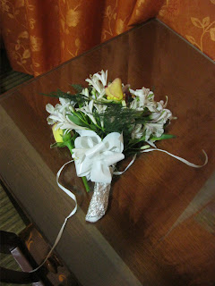 This little bouquet was given to me by one of the flair girls at the wedding that was at the temple that night after my iPod got stolen. All of the spanish people were very nice and sorry about my things. Very, very sad night in my books.